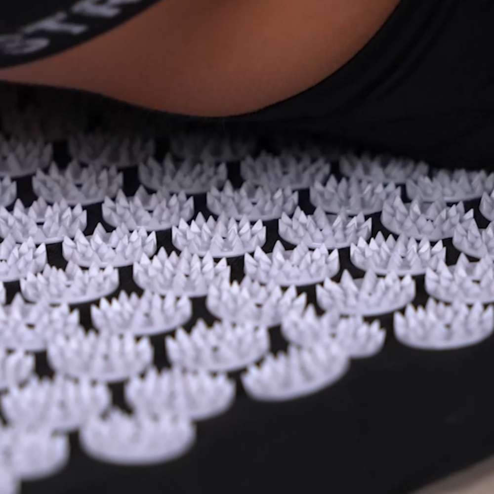 Akupressurmåtten hjælper dig til øget mobilitet, lindring af spændinger og smerter i ryggen, nakken og andre dele af kroppen samt en bedre fordøjelse og søvn.