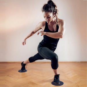 Fitness Slide Pads, som fungerer optimalt på glatte gulvoverflader som træ-, kork- eller flisegulve, omdanner øjeblikkeligt underlaget til en udfordrende og ustabil platform, der kræver både styrke, koordination og balance. Dette muliggør en mere intensiv træning og styrkelse af de stabiliserende muskler.