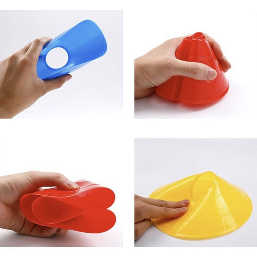 Hætterne har intense farver: gul, orange, rød, grøn og blå og er fleksible, så de ikke tager skade, selv hvis de bliver trådt på eller ramt. Det bløde materiale sikrer også, at de ikke udgør en risiko for dem, der træner, og de er ikke en forhindring, man kan snuble over.