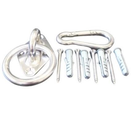 Vores væg/loftophæng er af ekstraordinær kvalitet og kan håndtere belastninger op til 200 kg. Uanset om du træner indendørs eller udendørs, er dette rustfri stålophæng robust og pålideligt. Med 4 høj kvalitets skruer og plugs inkluderet, er monteringen enkel og sikker.