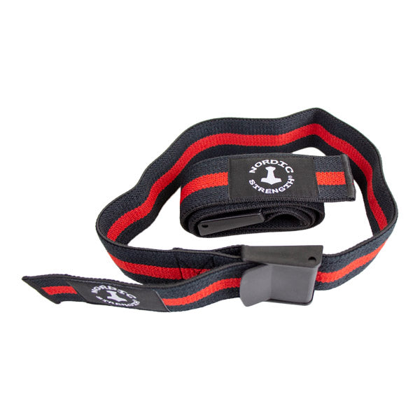 Bestil vores røde og sorte okklusionsbånd til benene fra Nordic Strength i dag til lav pris og tag det første skridt mod en mere effektiv træningsoplevelse.