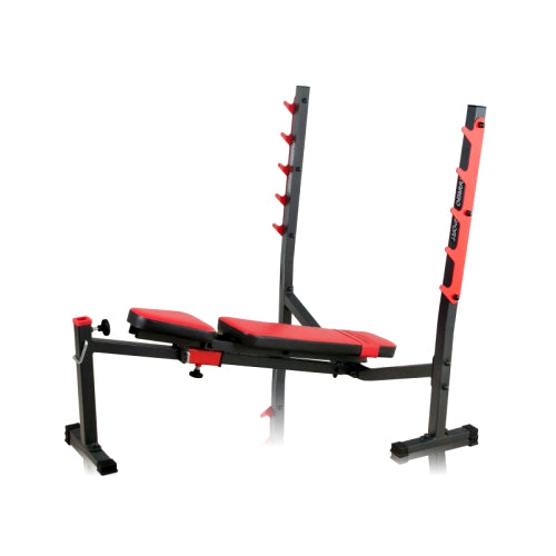 Vores Semi Pro Bænkpres med holder tilbyder en bred vifte af træningsmuligheder, herunder almindelig bænkpres, skrå bænkpres og negativ bænkpres (decline bænkpres).