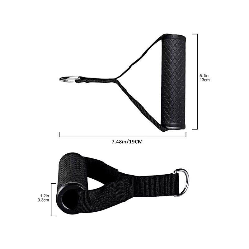 Hver pakke indeholder 2 enhånds kabelgreb med karabiner og slidstærke gummihåndtag, der sikrer et fast og komfortabelt greb under træningen. De robuste og holdbare nylonstropper garanterer pålidelig ydeevne, hvilket gør disse enhånds kabelgreb til et pålideligt redskab i din træningsrutine.
