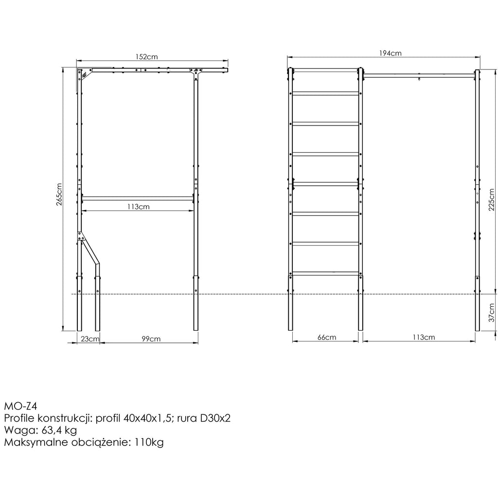 - Modulært design – der er mulighed for at udvide konstruktionen med flere elementer og skabe det fitnesscenter, du altid har drømt om.