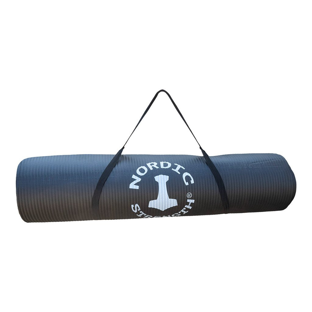 XL Træningsmåtte med bærestrop - sort (190 x 100 x 1,5 cm) fra Nordic Strength