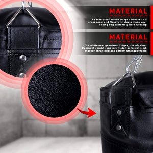Vores imponerende boksepude på ca. 27 kg er det ultimative værktøj til alle, der ønsker at forfine deres kampsportteknikker og styrke. Den leveres komplet med en boksesæk og en firepunkts stålkæde med karabinhage for en pålidelig ophængningsløsning.