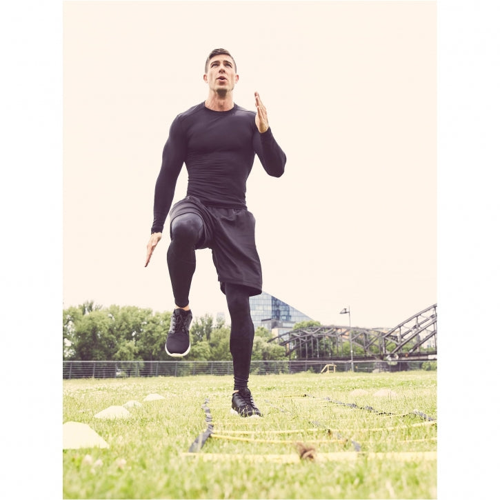 Sidelæns hop: Placer stigen på gulvet og hop sidelæns fra en ende til den anden. Dette øger din laterale bevægelsesevne og styrker musklerne i benene og hofterne.