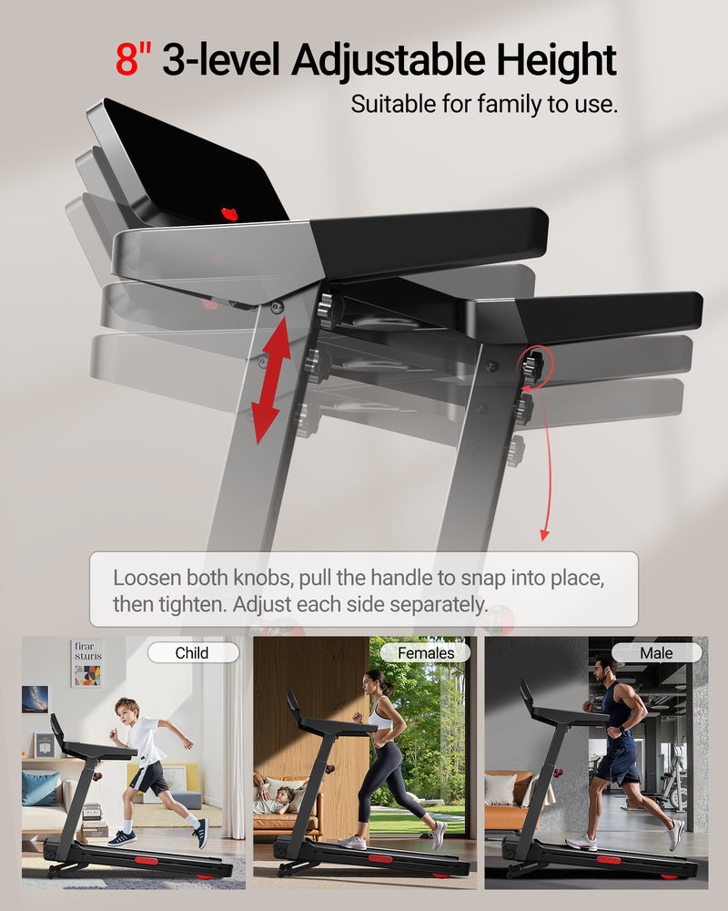 - Højdejusterbart design – Justér løbefladens højde fra 115,6 cm til 136 cm, så hele familien kan træne komfortabelt