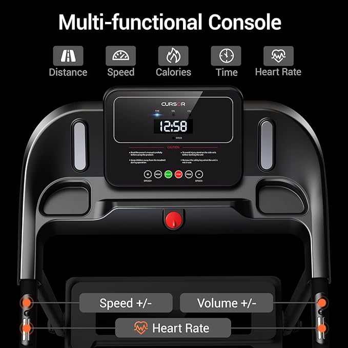 Det multifunktionelle håndtag gør det nemt at justere hastigheden hurtigt, samt starte og stoppe træningen med et enkelt tryk. En indbygget pulssensor i håndtaget overvåger din puls i realtid og hjælper med at sikre, at du træner korrekt og effektivt. Den store løbeflade er konstrueret med 5-lags skridsikkert bælte, 6 silikone stødabsorbere og 2 bløde gummipuder, hvilket giver en behagelig løbeoplevelse og reducerer belastningen på knæ og led.
