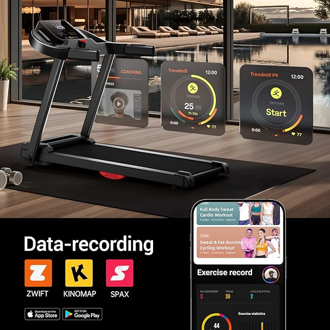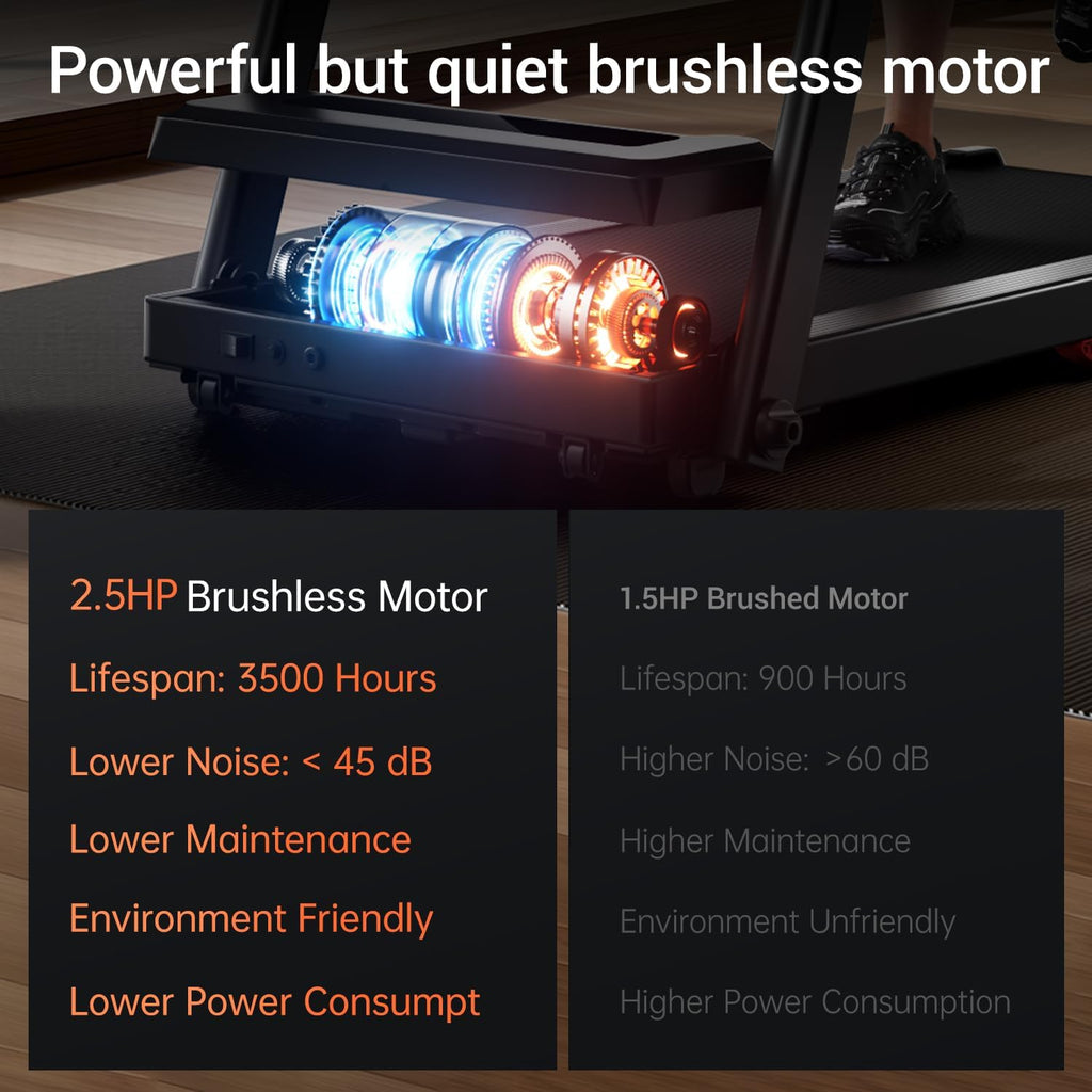 Med en kraftfuld 2,5 HK motor kan løbebåndet nå en maksimal hastighed på 12 km/t (7,5 MPH), hvilket gør det velegnet til alt fra let gang til mere intensive løbesessioner.