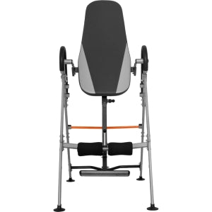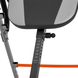Den avancerede ergonomiske udformning inkluderer et ryglæn med markeringer, der gør det enkelt at justere inversionstræneren til den perfekte position for din kropshøjde. Den orange stang giver mulighed for individuel indstilling af ønsket vinkel, så du kan tilpasse din træning præcist efter dine behov. Og når træningen er overstået, kan den let foldes sammen til kompakt opbevaring, hvilket sparer værdifuld plads i dit hjem eller fitnesscenter.