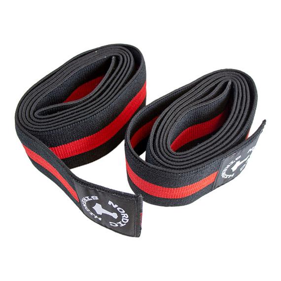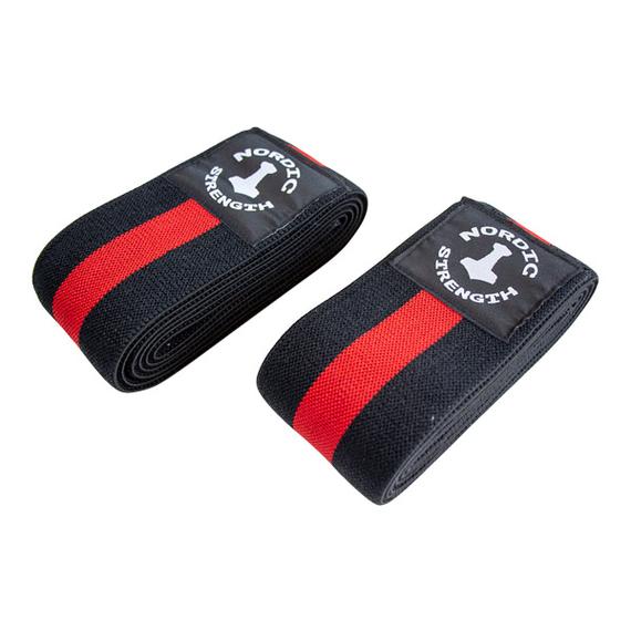 Bestil vores Knæbind uden velcro, sort-rød, 2 m pr. stk. (par) i dag til lav pris og få bedre støtte under din styrketræning!
