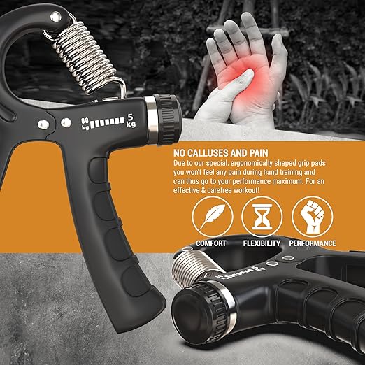 En af de mest bemærkelsesværdige funktioner er den justerbare modstand, som kan indstilles trinløst fra 5 til 60 kg. Det gør det muligt at tilpasse træningen til dine individuelle behov, uanset om du er nybegynder eller erfaren. Derudover leveres den som et kompakt 2-delt sæt, så du kan træne begge hænder samtidig eller have én håndtræner derhjemme og én med på farten.