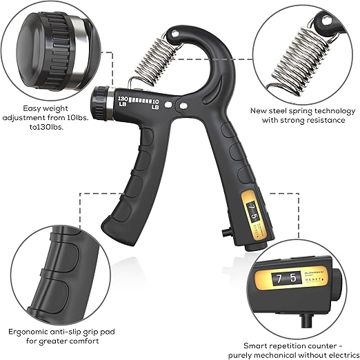 Denne premium håndtræner er det perfekte valg til både styrketræning og genoptræning. Den er ideel til klatrere og til dem, der ønsker at styrke deres greb eller opbygge finger-, hånd- og underarmsmuskler. Med den indbyggede tæller kan du nemt holde styr på dine fremskridt, hvilket gør træningen mere motiverende og effektiv.