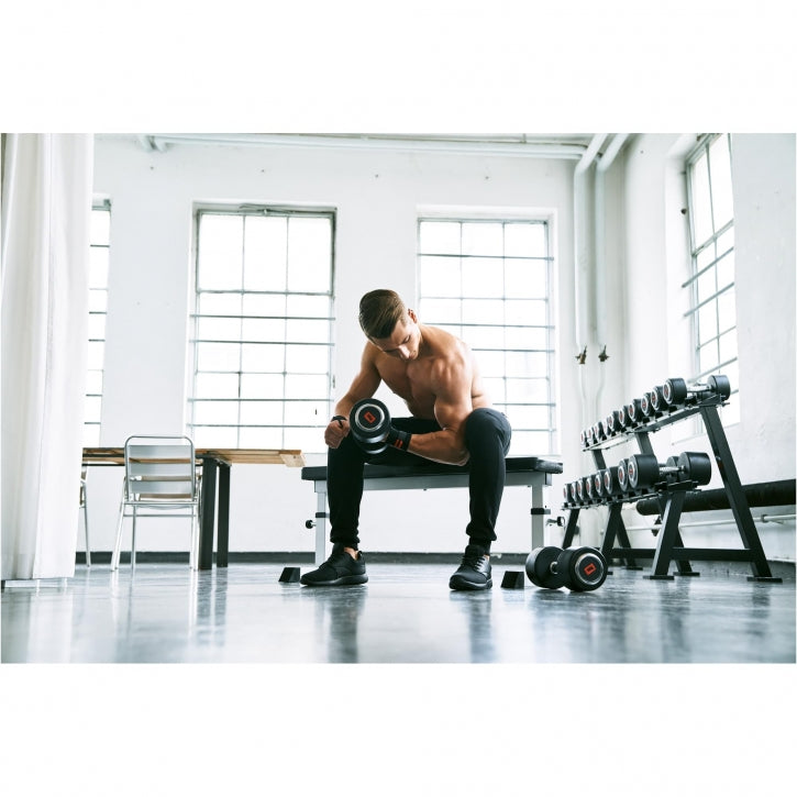 - Belagt med tykt gummi, der minimerer støj samt beskytter gulv og vægt