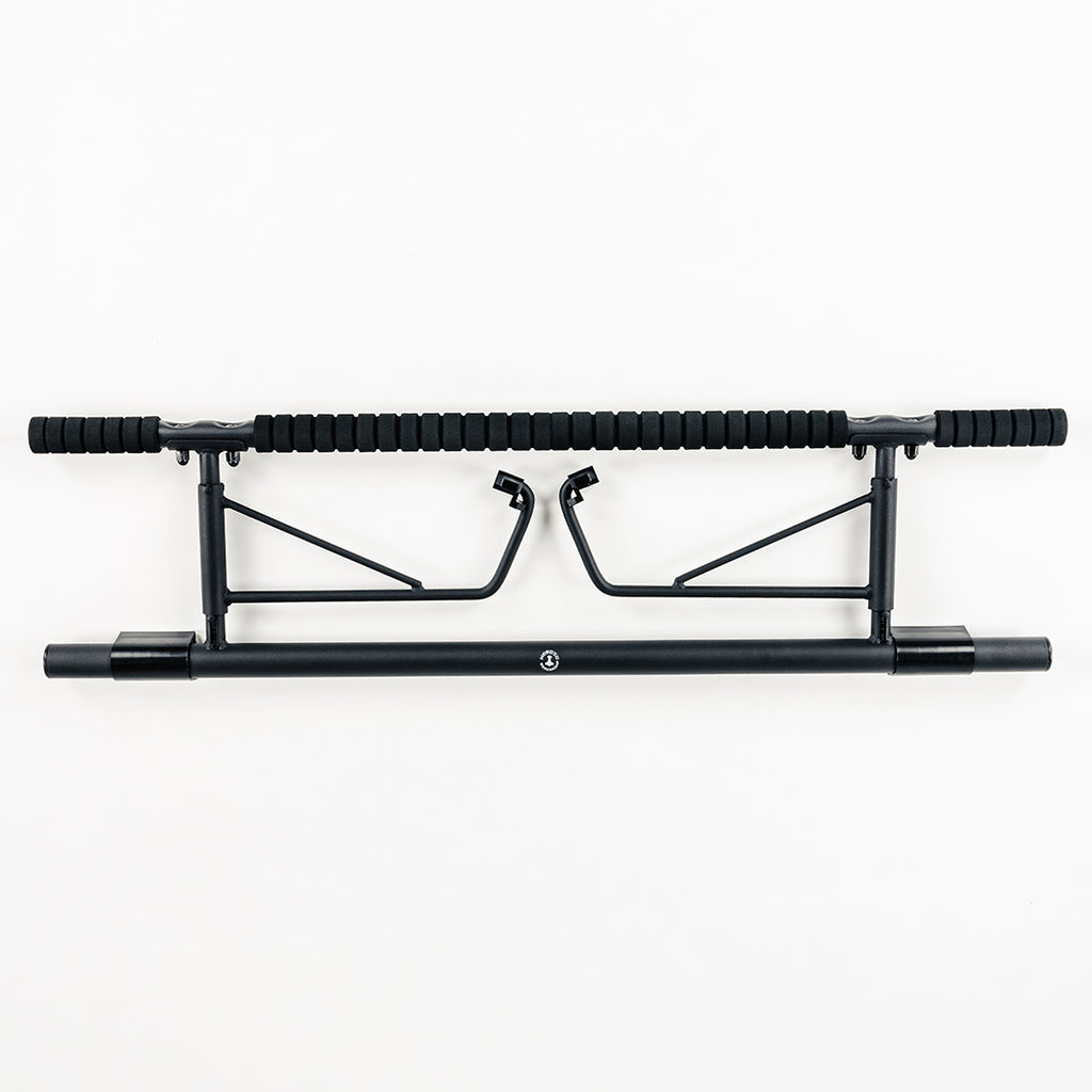 Hvordan monteres pull up-baren? Vores Pro Pull Up Bar kan monteres over dørkarmen. Husk at tjekke at dørkarmen er forsvarligt fastsat pga. vægtbelastning. Husk at følge vejledning/brugsansvisning som følger med produktet.