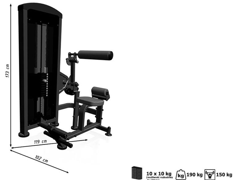 Den professionelle 2 i 1 Ryg- og Mavetræner gør det muligt at målrette både den forreste og bageste del af overkroppen – alt sammen i én kompakt og effektiv maskine. Maskinen er designet til at give brugeren mulighed for at udføre både rygstræk og mavebøjninger med optimal støtte og korrekt kropsposition, hvilket giver en mere effektiv og skånsom træning.