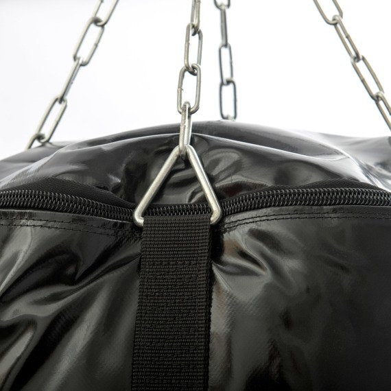 Vores professionelle boksepude er designet til at holde til selv de mest intense træningssessioner, takket være dens stærke syning og robuste lynlås. Med de medfølgende kæder og låseringe er den nem at hænge op, så du kan komme i gang med din træning med det samme.