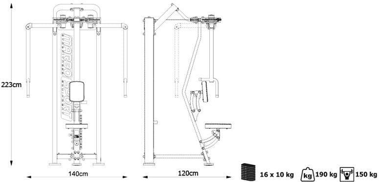 Med en vægtstak på 160 kg, der er justerbar i 10 kg intervaller, kan du tilpasse modstanden og skabe en varieret træningsrutine, der passer til dine individuelle behov og træningsniveauer. Vores fokus på design, sikkerhed og pålidelig kvalitet sikrer, at denne maskine ikke kun er funktionel, men også æstetisk tiltalende og sikker at bruge.