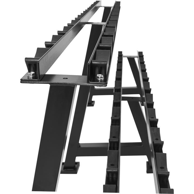 Den professionelle håndvægte holder er designet med fokus på funktionalitet og stabilitet. De universelle hylder og robuste konstruktion gør den ideel til organiseret opbevaring af håndvægte i ethvert træningsmiljø.