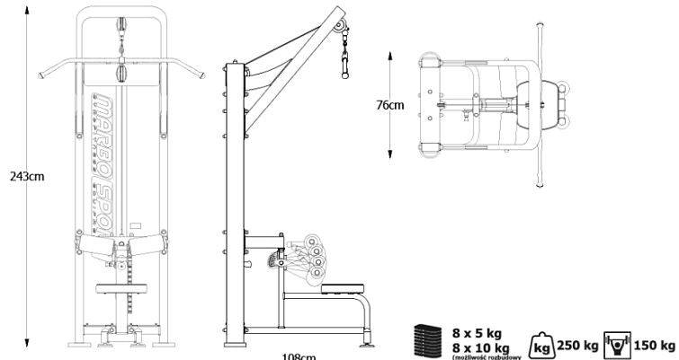 Med en vægtstak på 120 kg, der består af 5 kg og 10 kg vægte, tilbyder dette træktårn tilstrækkelig modstand til både begyndere og mere erfarne træningsentusiaster.