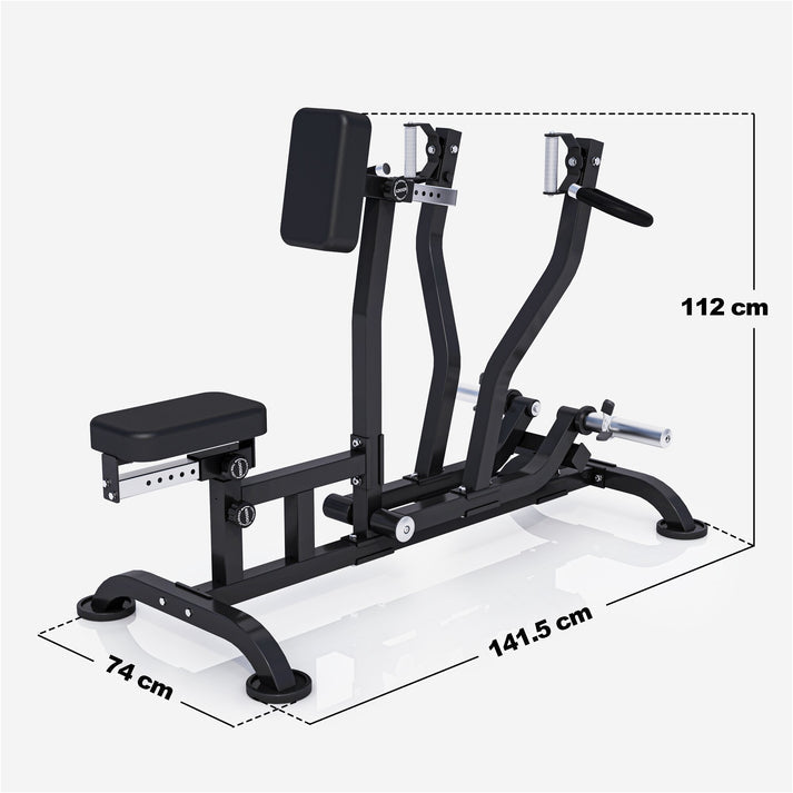 Udover at fokusere på ryggen træner du samtidig skuldre, arme og krop, mens du forbedrer din trækstyrke. Takket være den justerbare sæde- og brystpude kan romaskinen nemt tilpasses din krop og dine behov. Den robuste konstruktion med en maksimal belastning på op til 200 kg sikrer stabilitet og lang holdbarhed, selv ved intensive træningspas.