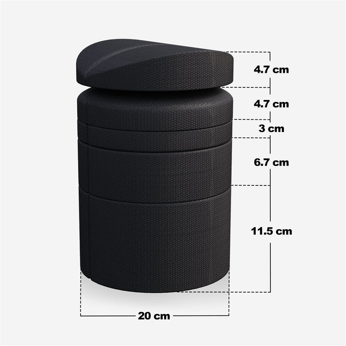 - Indeholder 5 stabelbare dele og en praktisk opbevaringstaske.