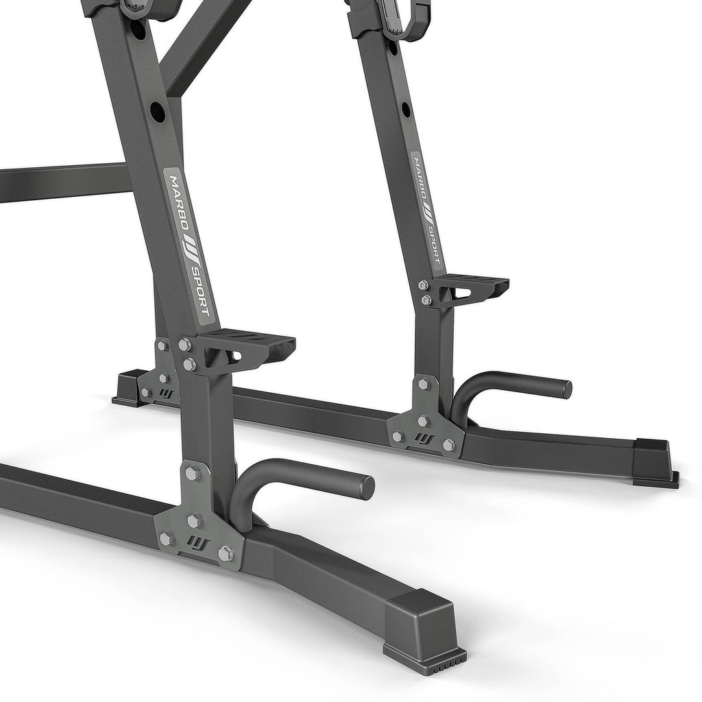 Udover de mange øvelsesmuligheder, er denne multistation udstyret med ergonomiske greb, der øger komforten under træningen. De to greb til push ups er placeret strategisk for at sikre korrekt kropsholdning og maksimere muskelaktiveringen i brystet og triceps.