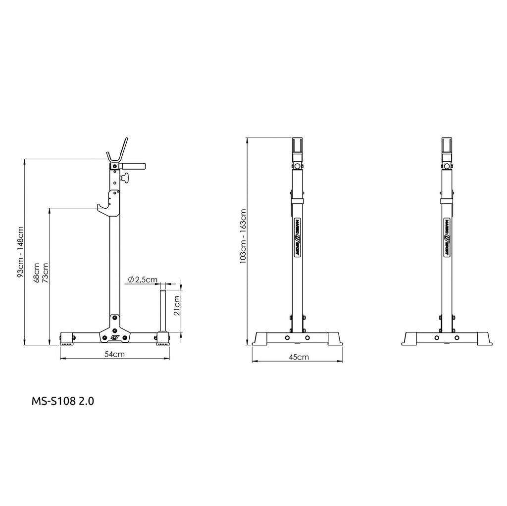 En af de mest bemærkelsesværdige fordele ved disse standere er deres justerbare højde, der kan tilpasses i intervaller på 5 cm, (103-163 cm) hvilket giver dig mulighed for at tilpasse dem lige præcis til dine præferencer og den øvelse du laver.