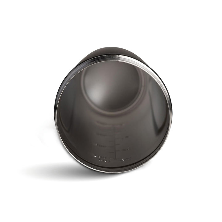 - Op til 25 oz (739 ml) med en let aflæselig ml og oz skala.