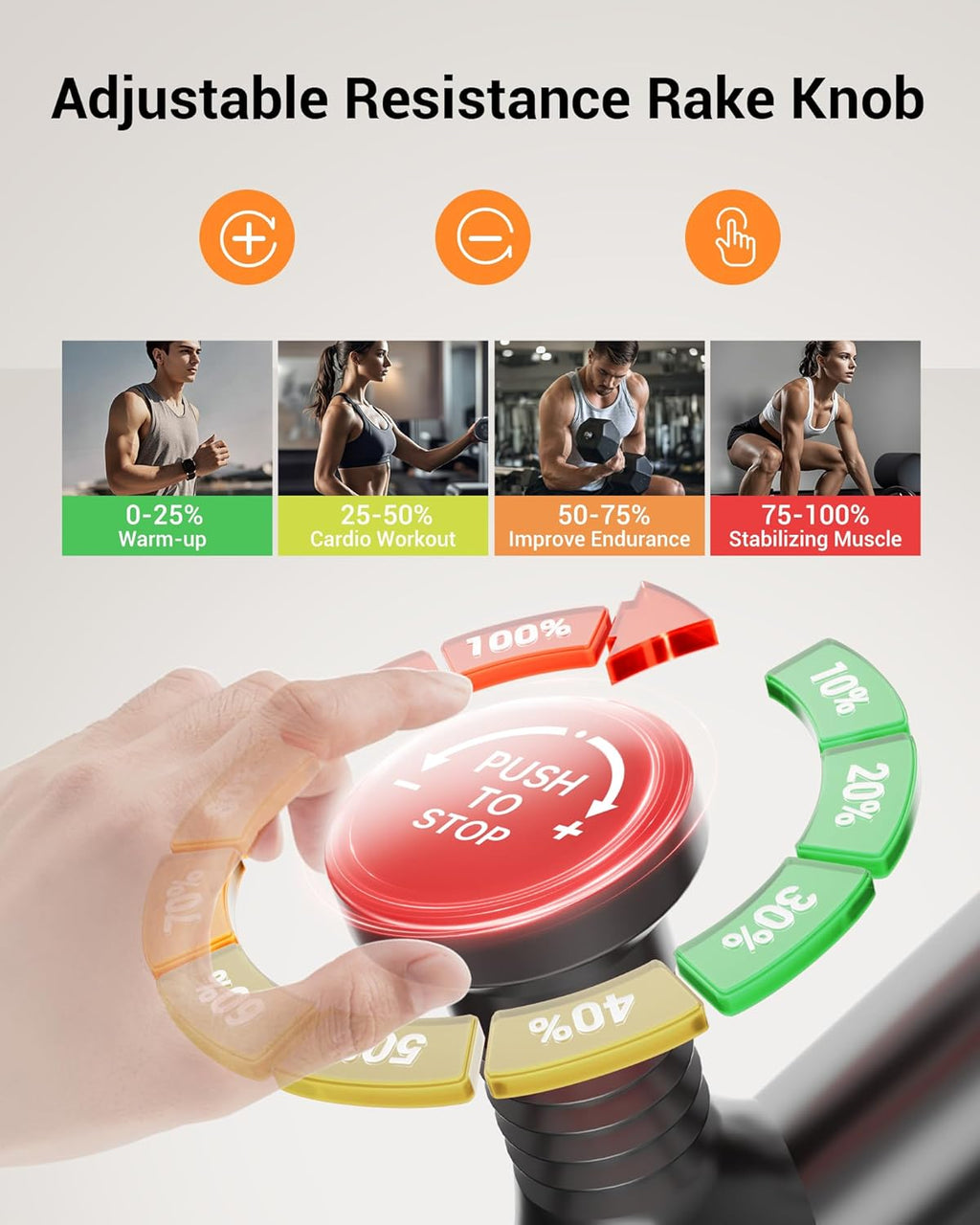 Holdbarhed og stabilitet: Bygget i højkulstofstål med trekantet struktur giver denne motionscykel overlegen stabilitet og holdbarhed og har en maks. belastning på 136 kg. Det mikrojusterbare spændingssystem fra 0–100 niveauer giver en tilpasset træningsoplevelse, mens remtrækket sikrer en glat og støjsvag kørsel.