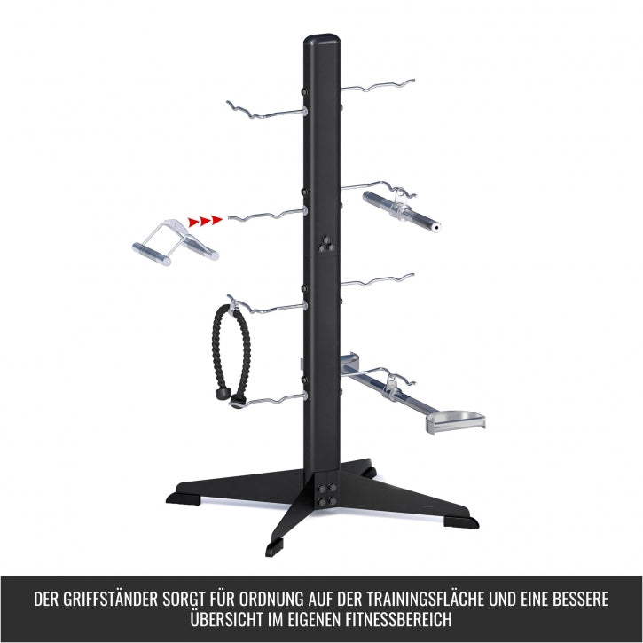 Den robuste og stabile konstruktion sikrer, at dine greb er sikkert opbevaret, og du kan nemt skifte mellem dem. Dette sparer ikke kun tid, men giver også dit træningsområde et professionelt og ryddeligt udseende.