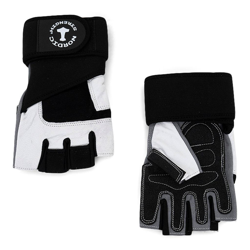 Træningshandsker med håndledsstøtte i sort/hvid fra Nordic Strength