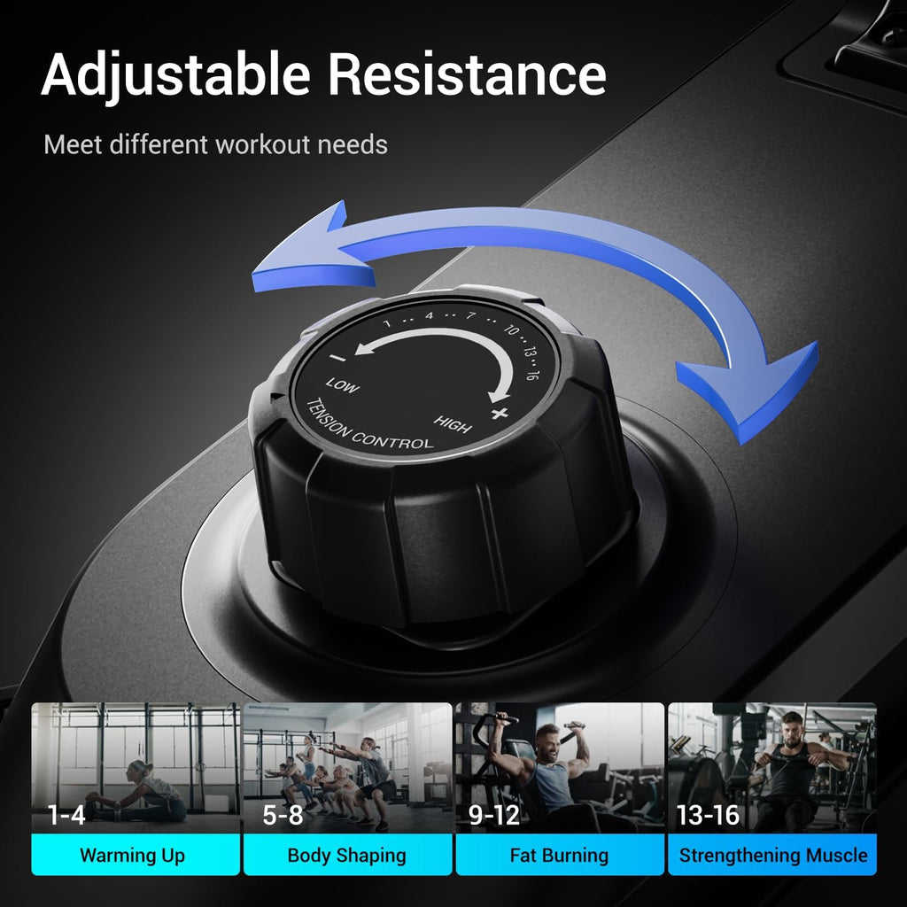 Maskinens magnetiske modstandssystem tilbyder hele 16 modstandsniveauer, så du nemt kan tilpasse intensiteten – fra rolig genoptræning til krævende full-body workouts.