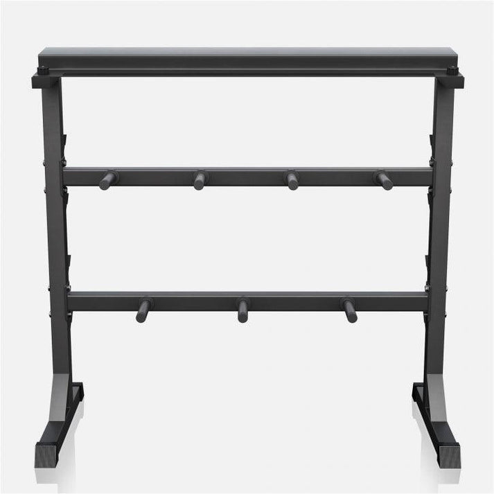 Den ergonomisk placerede hylde på toppen af stativet er en smart detalje, der gør det nemt at opbevare og få adgang til håndvægte. Dette reducerer risikoen for rod og skaber et mere professionelt og indbydende miljø for dig selv og eventuelle træningspartnere.