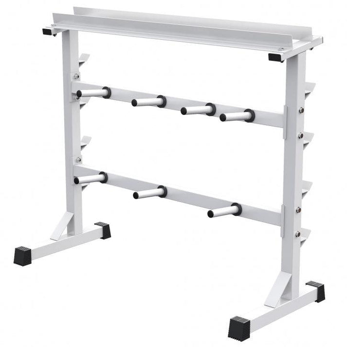 Hold styr på dit vægtudstyr med vores 3 i 1 vægtskive- og vægtstangsholder (hvid)